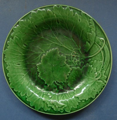 VICTORIAN GREEN GLAZED MAJOLICA LEAF PLATE (N0.4) -19TH CENTURY