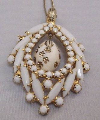 Vintage White Milk Glass Marquise Unique Necklace L22