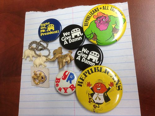 Title (ebay affiliate link): 10 Count Lot Misc Vintage Republican Campaign Buttons Pins Keychains Etc