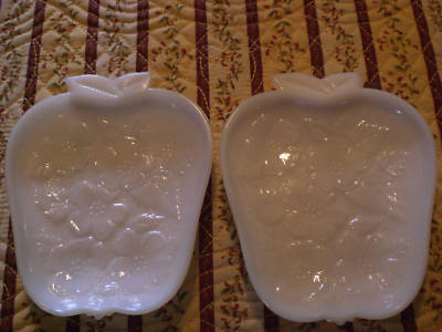 Two Vintage Apple Shape Snack Set Plate Milk Glass Nice