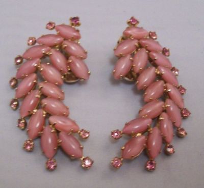 Vintage Pink Milk Glass & Pink Rhinestone Earrings L22