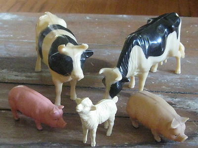 5 VINTAGE HARD PLASTIC FARM ANIMALS