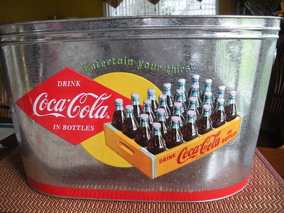 Title (ebay affiliate link): Coca-Cola Metal Embossed Ice Bucket Drink Cooler 16 1/2"