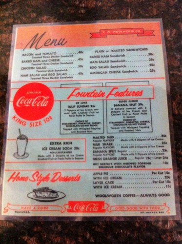 1950s Coca Cola F.W. Woolworth Co. vintage menu Cool