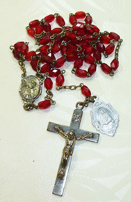 Title (ebay affiliate link): ANTIQUE ROSARY ~ 21" GARNET RED FACETED BEADS *SILVERPLATE OVER COPPER*