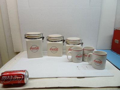Title (ebay affiliate link): Gibson Coke Coca Cola CAFE SODA FOUNTAIN Ceramic Canisters Jar Cup Glass lot