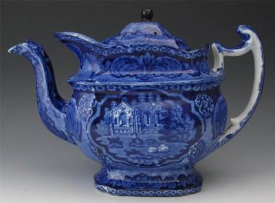 ENOCH WOOD DEEP BLUE TRANSFERWARE TEAPOT, SHEPHERD / ABBEY 1818-46
