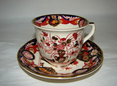 Title (ebay affiliate link): Antique MASON'S IMPERIAL Ironstone Tea Cup & Saucer Cobalt Rust Gold decor 1890s