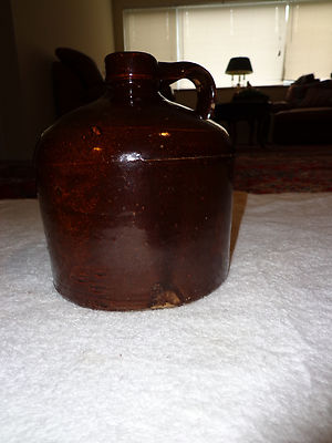 Antique Ceramic Stoneware Pottery Whiskey Jug Crock Glaze Brown
