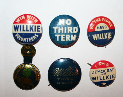 Title (ebay affiliate link): 1940 Willkie vs. Roosevelt President Campaign Button Political Pinback Pin Lot 1