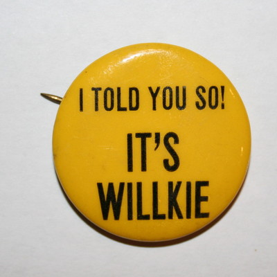 Title (ebay affiliate link): 1940 Willkie vs Roosevelt FDR President Campaign Button Political Pinback Pin