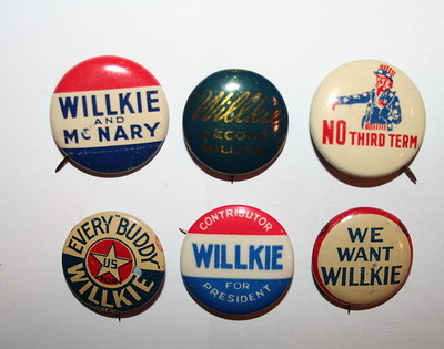 Title (ebay affiliate link): 1940 Willkie vs. Roosevelt President Campaign Button Political Pinback Pin Lot 4