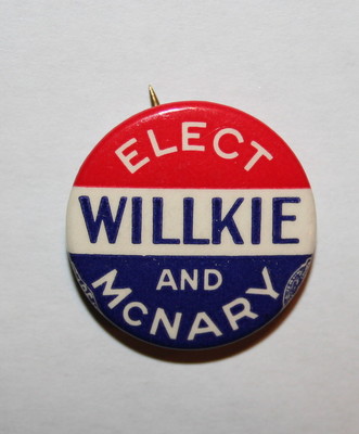 Title (ebay affiliate link): 1940 Willkie and McNary vs. Roosevelt FDR Campaign Button Political Pinback Pin