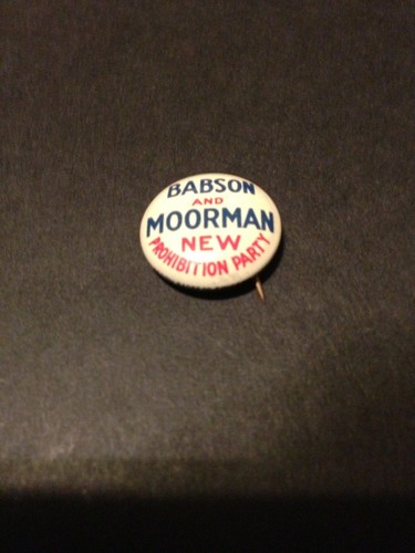 Title (ebay affiliate link): Babson And Moorman Prohibition Party For President 5/8" Litho Pinback