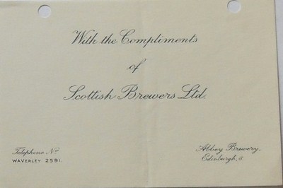 Title (ebay affiliate link): SCOTTISH BREWERS Abbey Brewery Compliment Slip 1960's VINTAGE Beer Labels