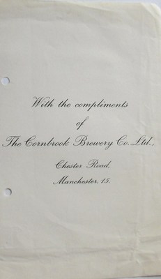 CORNBROOK BREWERY Manchester, Compliment Slip 1960's VINTAGE Beer Labels