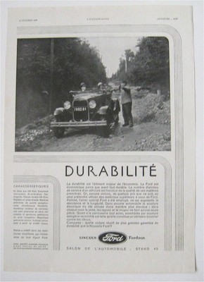 Title (ebay affiliate link): Ford Model A 1930 French Ad L'Illustration Durability