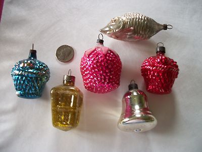 6 VINTAGE GLASS CHRISTMAS ORNAMENTS