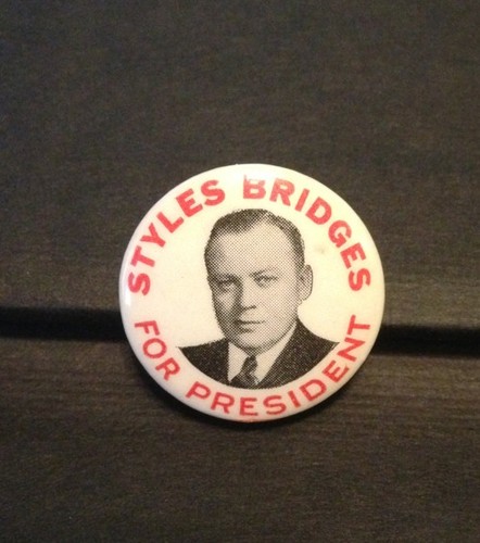 Title (ebay affiliate link): Styles Bridges For President; Hopeful Celluloid 7/8" 1940 St. Lous Button Co. Bp
