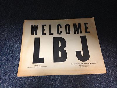 Title (ebay affiliate link): "Welcome LBJ" Lyndon Johnson Sign from 1966 - Vincennes, Indiana - 18 x 11