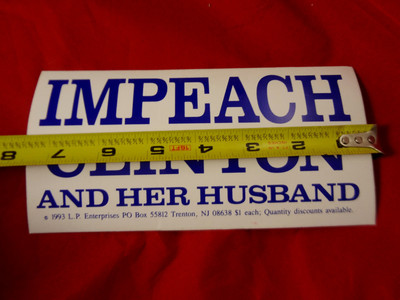 Title (ebay affiliate link): Vintage 1993 Impeach Clinton and her husband Bumper Sticker US President Ad MINT