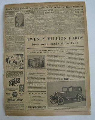 Ford Model A 1931 Newspaper Ad Town Sedan Twenty Million Sold