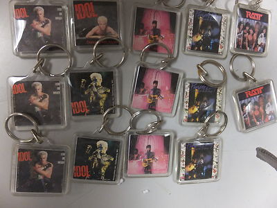 VINTAGE LOT 14 1984 MUSIC KEY RINGS Wham, Billy Idol, Ratt, Purple Rain-Prince