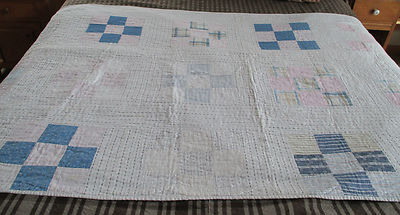 Title (ebay affiliate link): Primitive Vintage Nine Patch Quilt Twin 45 x 84 Hand Quilted Pastels blues