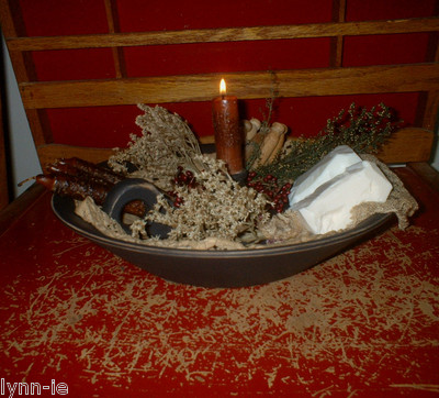 Primitive VTG Wooden~Bowl~Candles~Soaps~Drieds~Old Homestead Sink-Side Gathering