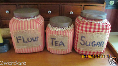 Title (ebay affiliate link): COUNTRY PRIMITIVE SET OF CANISTER JARS COVERED IN HOMESPUN-3 PCS.