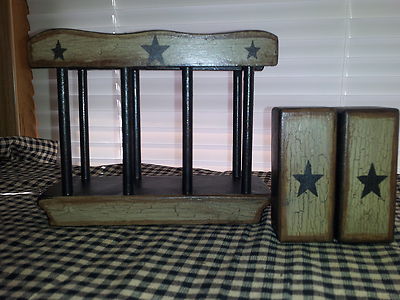 Title (ebay affiliate link): Primitive decor ~matching salt & pepper shakers & napkin holder ~ country ~ star