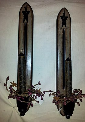 Primitive decor ~set wall candle sconces ~ country ~ americana ~ star ~