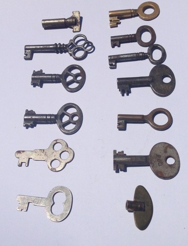 Title (ebay affiliate link): Lot Clock Keys Antique Skeleton Key Hollow Barrel Watch Keys Alarm Clock