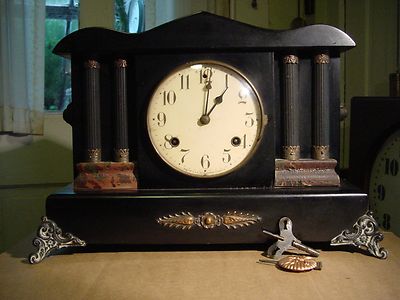 Title (ebay affiliate link): ANTIQUE WATERBURY 4 COLUMN BLACK ENAMEL MANTEL CLOCK WORKING WELL NICE