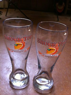 New SHOCK TOP Beer Belgian White Beer Glasses 16 ounce Set of 2 w/ Budweiser Bag