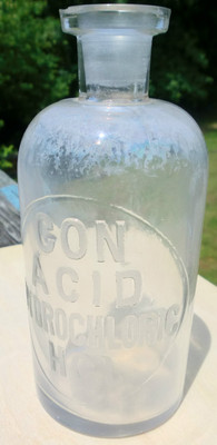 Vintage acid bottle raised letters Con Acid Hydrochloric HCL
