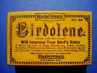 Title (ebay affiliate link): RARE 1880'S "BIRDOLENE" QUACK MED BIRD SEED BOX - CURE FOR SONG LOSS & DISEASE!