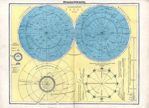 Title (ebay affiliate link): c1900 STARS HEMISPHERES CELESTIAL SUN PLANETS ASTRONOMY Antique Lithograph Print