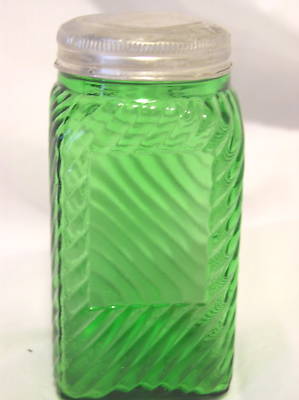 Title (ebay affiliate link): Vintage Antique Green Glass Hoosier Spice Jar w/ lid