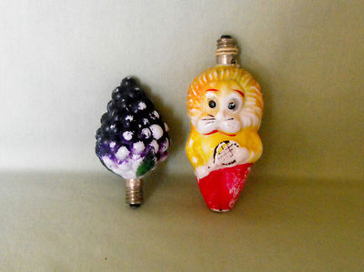 ANTIQUE CHRISTMAS FIGURAL LIGHT BULBS LION AND GRAPE CLUSTER