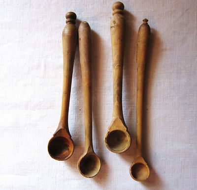 Title (ebay affiliate link): 4 Primitive Carved Wood Spice Spoons Tureenware Scoops 1 marked France Folk Art