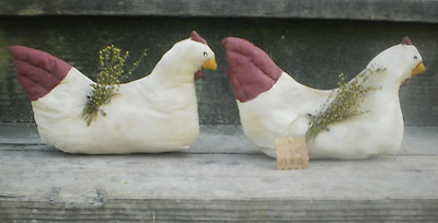 Set of 2 Primitive Grungy Hen Shelf Table Sitter Chicken Ornie Bowl Filler