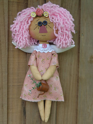 Primitive Country Raggedy Anne Doll Garden Angel Tin Watering Can Flower Pink