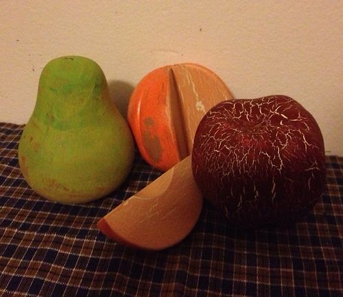 Title (ebay affiliate link): Primitive Wood Fruit Pieces Crackle Farmhouse Decor Country Kitchen