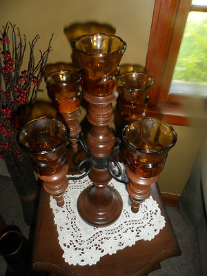 Antique/Vintage Amber Glass Candle Holders Centerpiece Primitive Decor