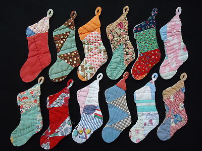 Title (ebay affiliate link): 12 VTG CUTTER QUILT CHRISTMAS SANTA STOCKINGS - SCRAPBOOKING