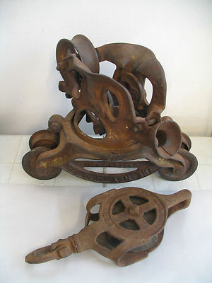 Title (ebay affiliate link): Antique NEY Hay Trolley Loader Unloader with Wood Pulley Canton Ohio Steampunk