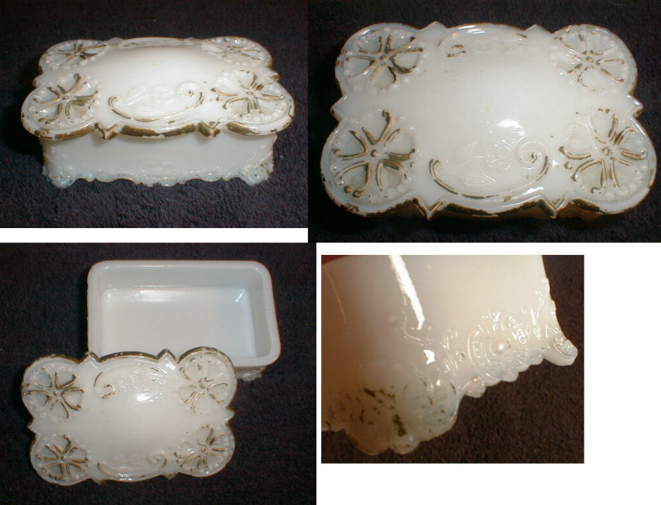 VG ANTIQUE VICTORIAN ERA MILK GLASS TRINKET BOX FLORAL