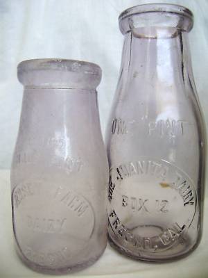 2 Lavender/Purple Vintage Milk Bottles Fresno,CA *Rare*