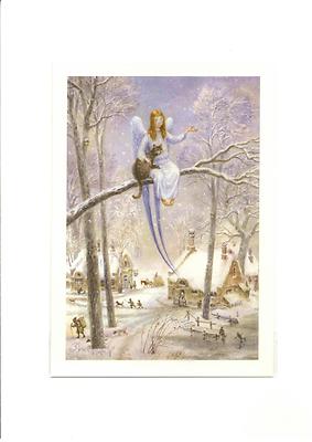 Author's Russian Painting Funny Postcard Cats / Angel / Kitten Kitty "Warm Snow"